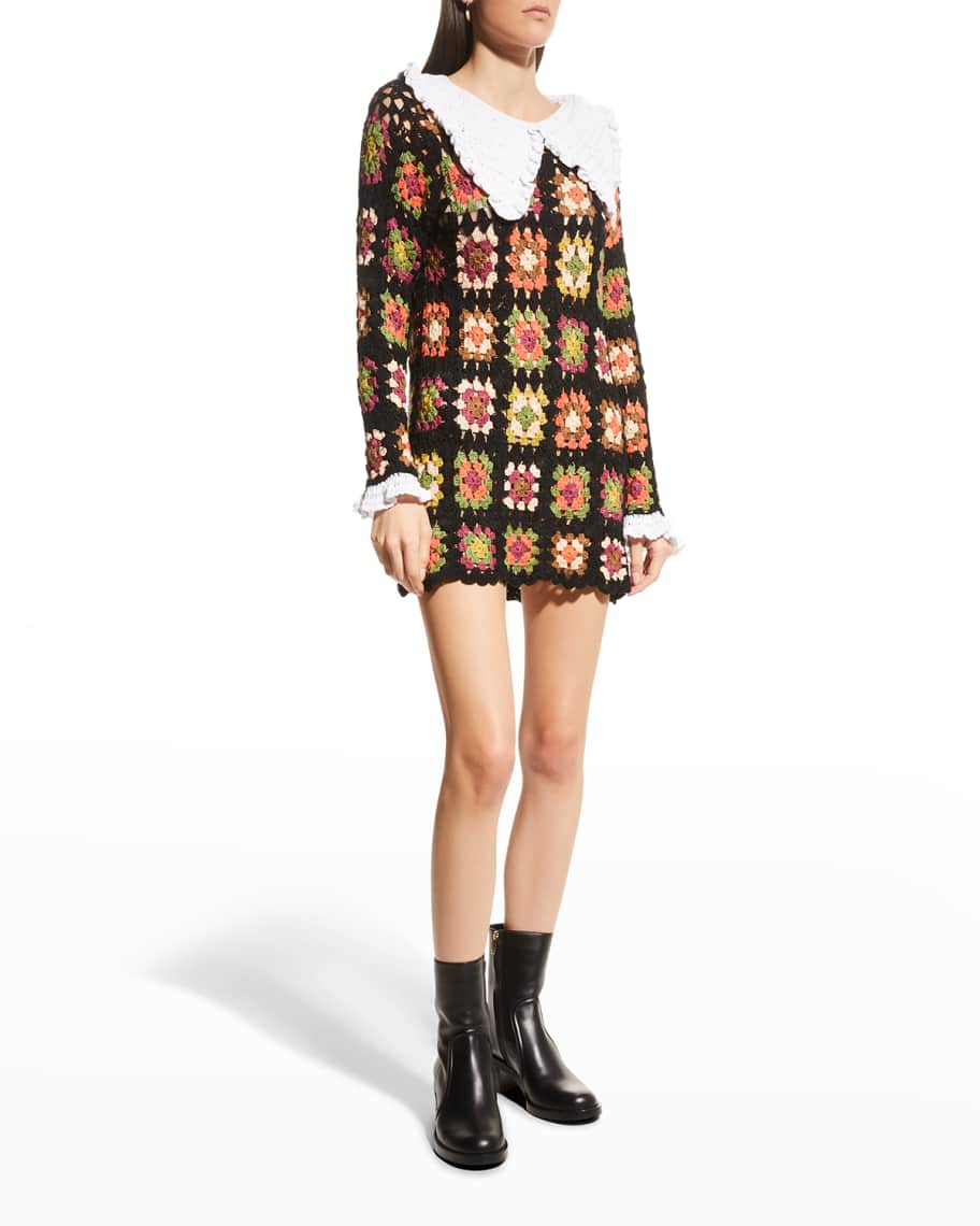 Celiab Baswood Collared Crochet Mini Dress Neiman Marcus